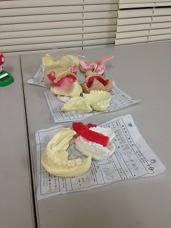 入れ歯の歯茎となる部分や噛み合わせ部分の作業工程中でした。