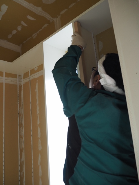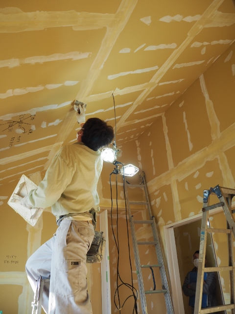 工事も終盤をむかえ、 現場には職人さんの出入りが多くなっています。   本日はクロス屋さんに大工さん、足場屋さんがお仕事しています。       現場のお仕事もいよいよ今週いっぱいです。