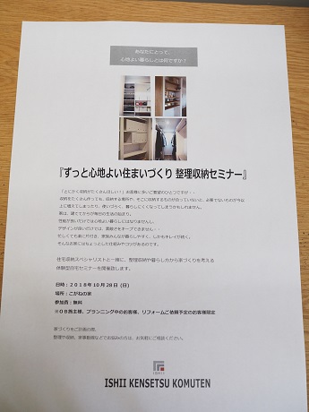 来月より、整理収納や暮らし方から家づくりを考える