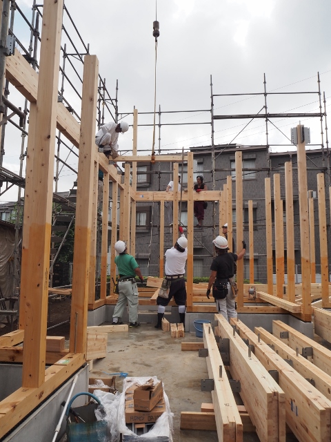 おはようございます。   朝方の雨音が不安で仕方ありませんでしたが・・     忙しい中、予定を組み手を貸してくれる   職人さんたちに、感謝。     お日様が笑っているうちに全力で進めております。             施主様 上棟&お誕生日   おめでとうございます。