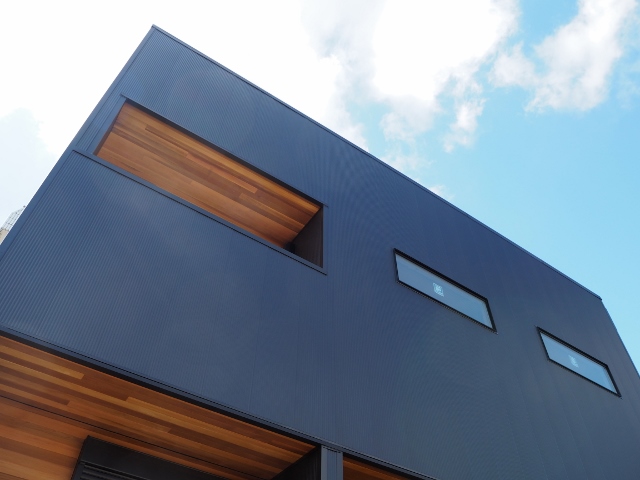 流山 あたたかな家       足場、養生が外れ、うっとりしてしまう外観。   男前なブラックですが、 レッドシダーの木目がチラリと入り、とてもエレガント!               松戸市。   サッシが入りましたね。 今日は大工さんの息子さんもお手伝い。   進路を決める時期もすぐかな? 貴重な体験ですね。 言葉少なく、もくもくと働く親子の姿・・ やはり、父の背中は偉大です。       暑い中の作業が続きます。 くれぐれも、体調第一でお願いしたいと思います。