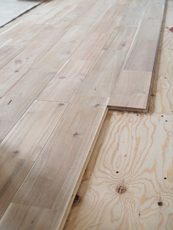フローリング貼り、電気配線や換気システムの工事が進んでいます。